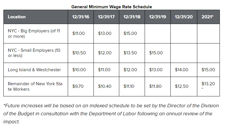 Minimum wage notices are included in State Labor Law Posters. New York State Division of the Budget September 22 2021 1 Report on New Yorks Minimum Wage Increases Scheduled for 2022 Introduction As provided under NYS Labor Law 656 this report is intended to provide insights into the impact of recent. New York credit union leaders are reminded that the states minimum wage and salary level threshold for determining exempt employee status will increase throughout the state except in New York City on Dec. Adjusted annually on January 1.
